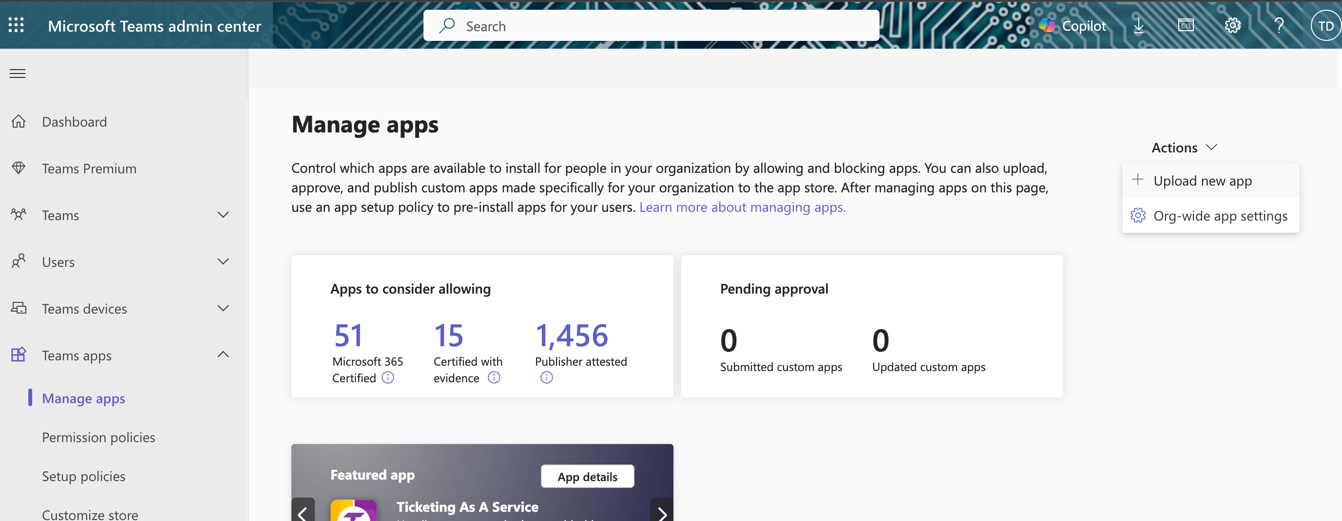 📋 Note: Only workspace administrators can install the Teams integration. Once installed, all team members can interact with agents. Custom apps must be enabled to allow the upload of Dust app.